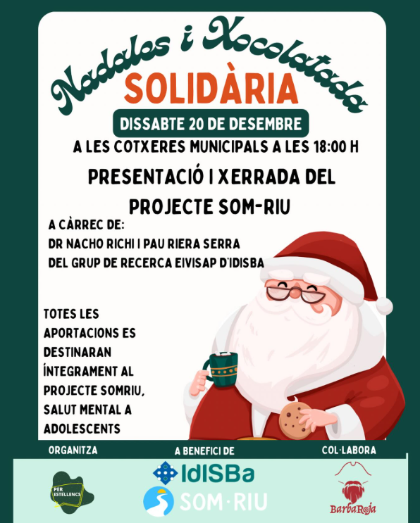 El passat 20 de desembre, els investigadors de l’IdISBa, Ignacio Ricci Cabello i Pau Riera Serra, van participar en la tradicional Xocolatada Solidària celebrada a Les Cotxeres d’Estellencs, on van presentar el Projecte Som‑Riu.
