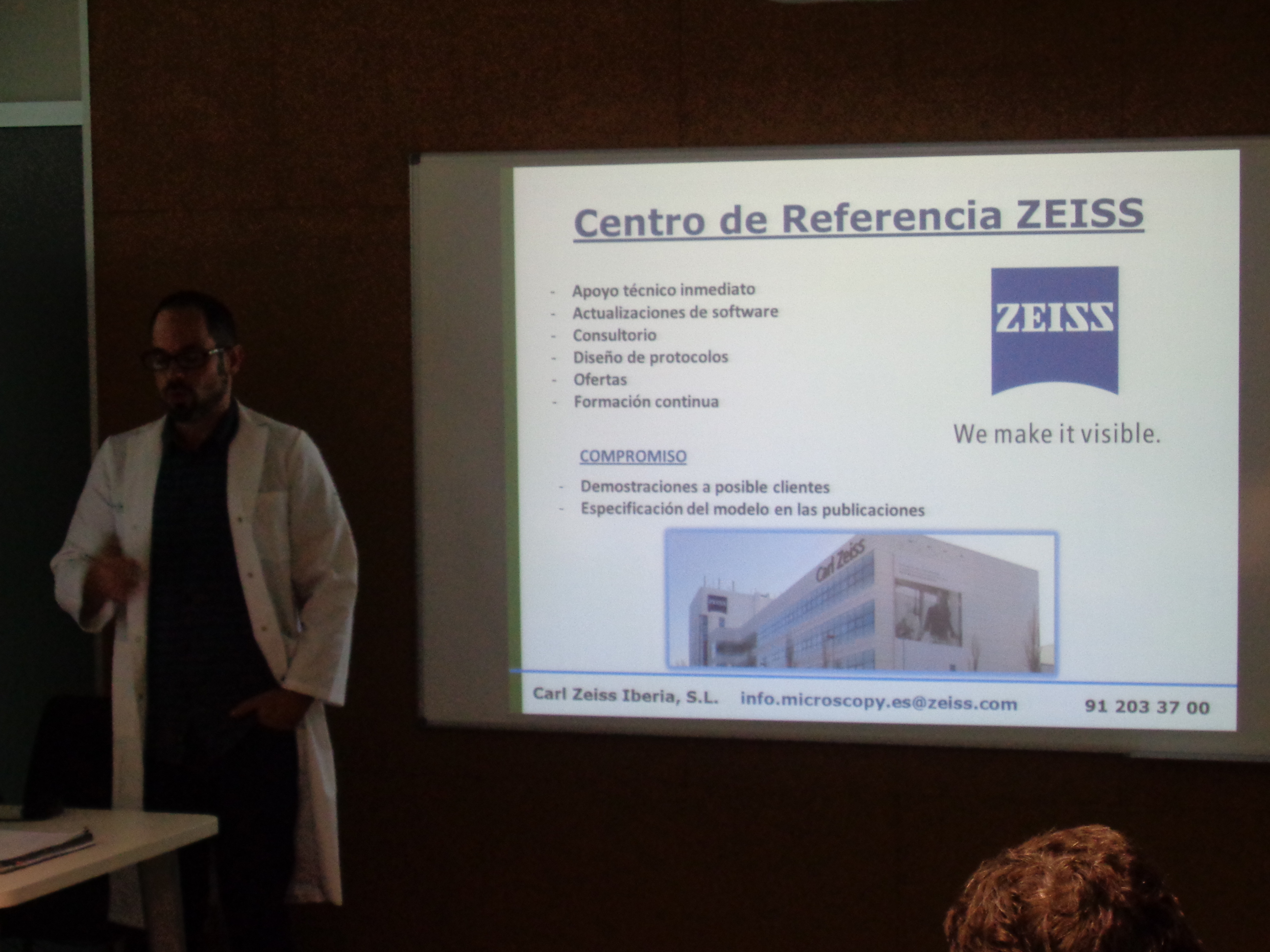 A continuación se realizó la presentación de los servicios de la “Plataforma de Microscopía” a cargo del Dr. Javier Pierola, Técnico de apoyo de la Plataforma.