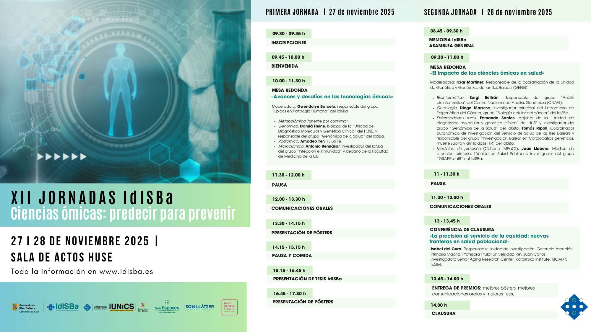 Los días 27 y 28 de noviembre, el Instituto de Investigación Sanitaria Islas Baleares organiza por doceavo año consecutivo su cita anual más destacada, las «Jornadas de Investigación IdISBa».