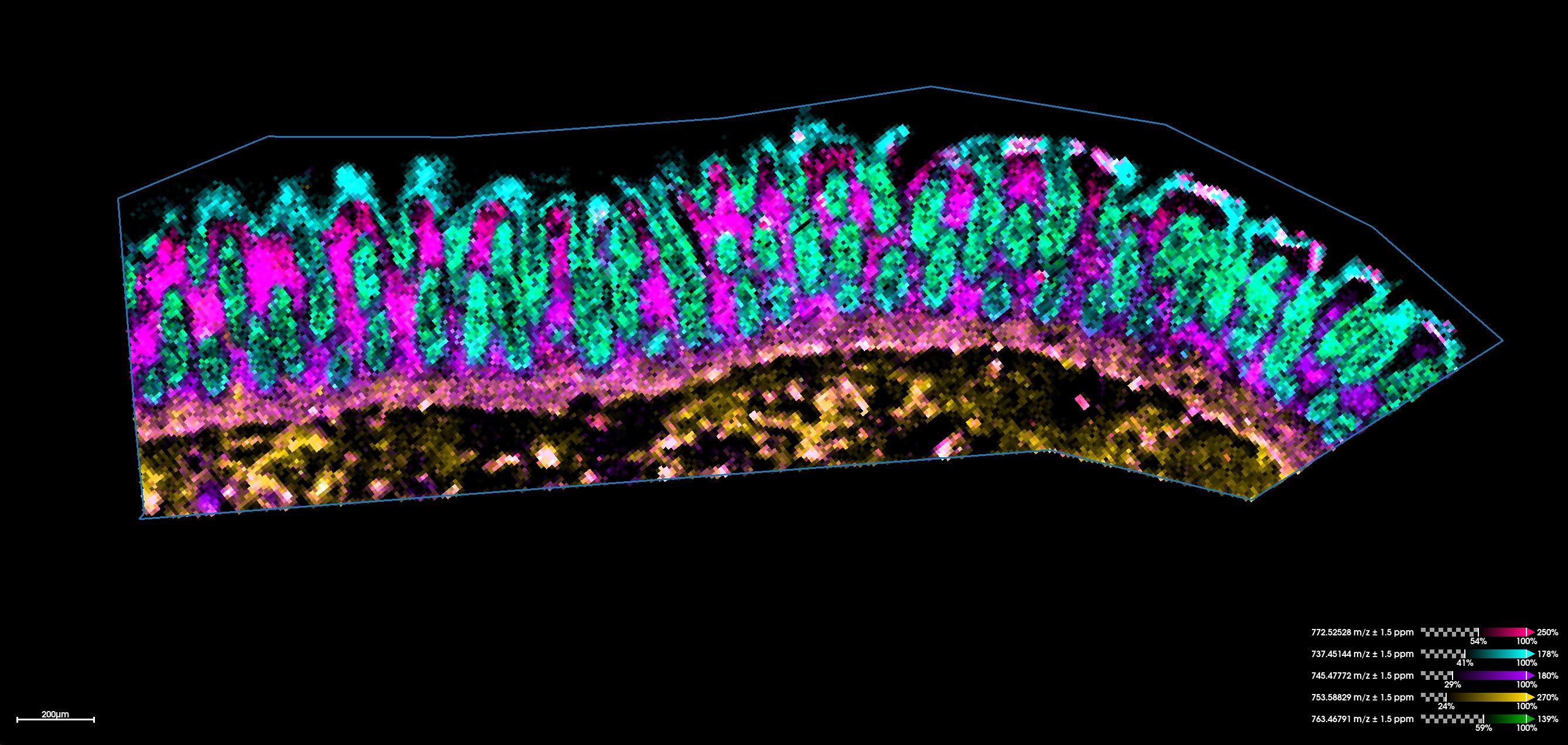 - Imagen molecular por espectrometría de masas de ultra-alta resolución por resonancia magnética, destinada a la detección y localización espacial de metabolitos y lípidos en tejidos, con una precisión y sensibilidad que permiten estudios detallados de composición molecular (Imagen 4).